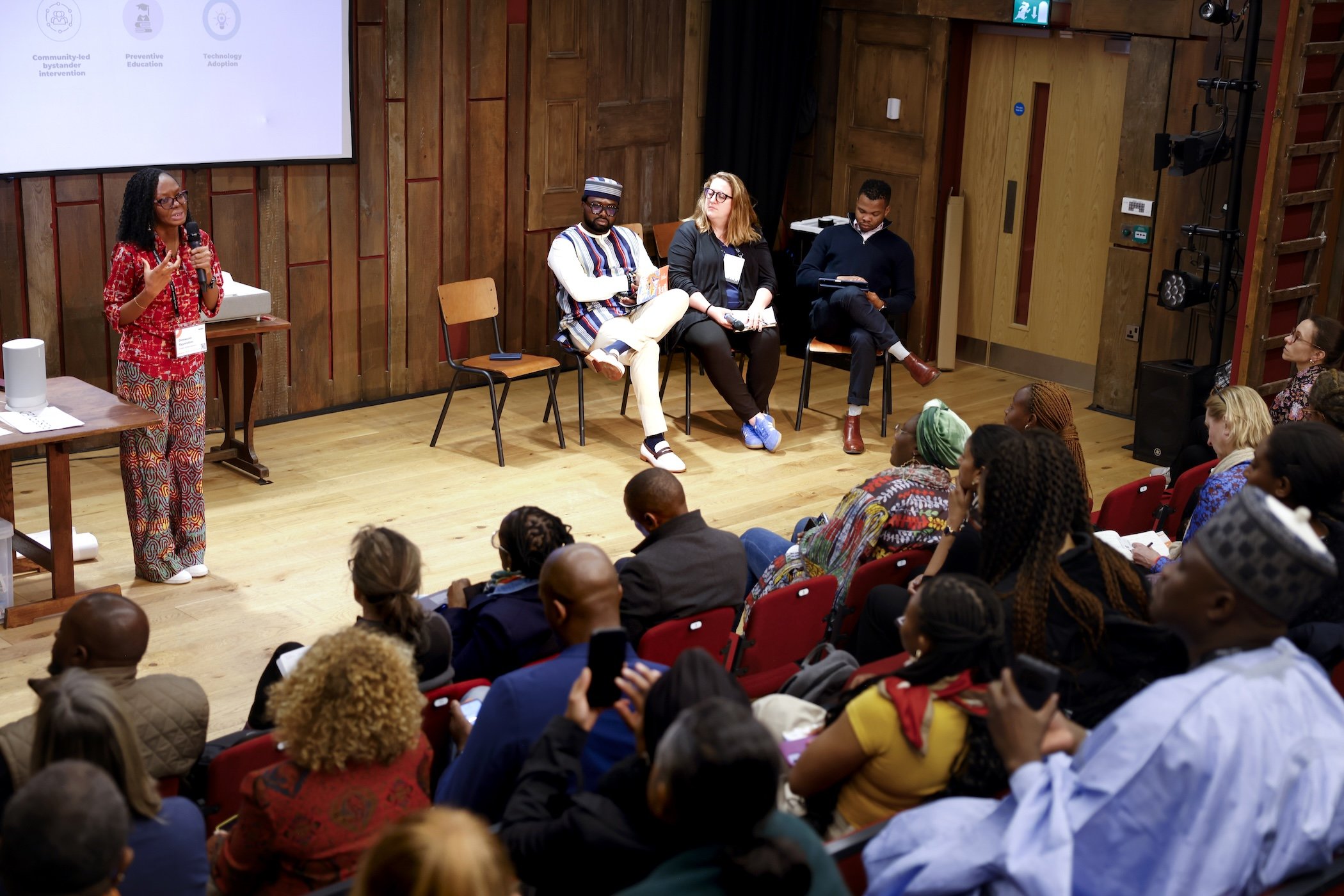 Omowumi Ogunrotimi, founder of Gender Mobile Initiative, speaks at a side event co-convened by Helpmum during the Skoll Forum in Oxford, UK, 2025.