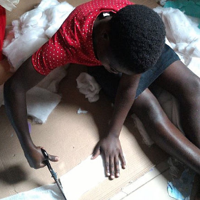 (Above: GUIU participant making her first reusable sanitary pad during a puberty and menstruation training session.)