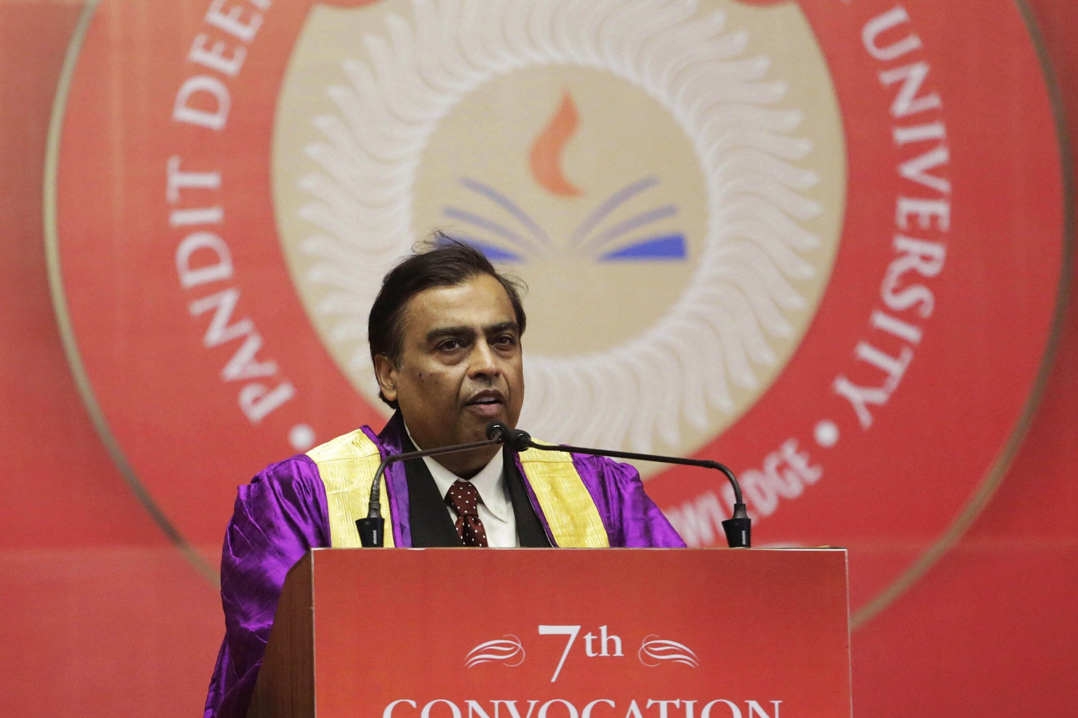 Mukesh Ambani speaks during an event in Gandhinagar, India, Aug. 29, 2019.