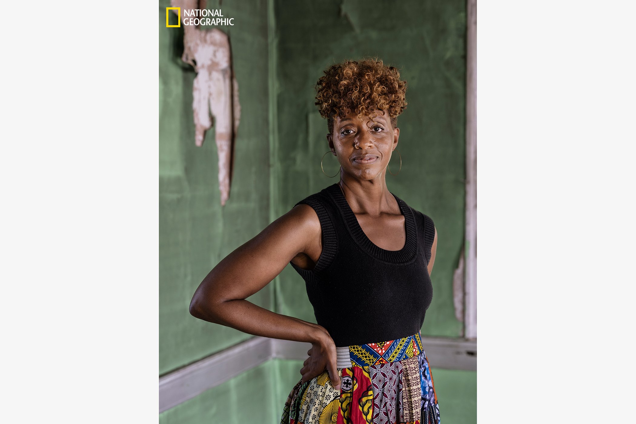 National Geographic Explorer, Tara Roberts stands for a portrait at her grandfather's abandoned home in Edenton, North Carolina, June 13th, 2021.