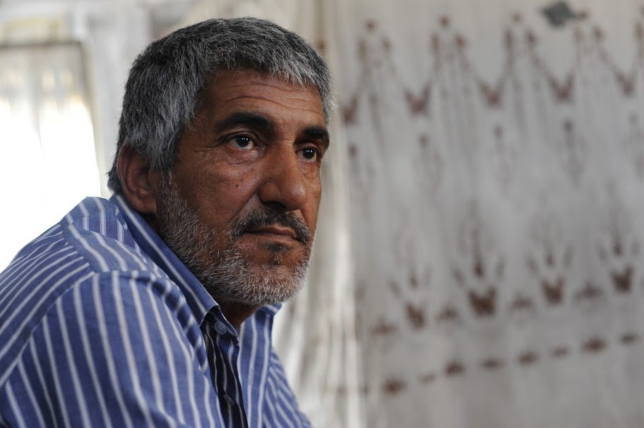 Aeed Aloosh, 50, sits in the relative cool of his shelter, protected from the sweltering desert temperatures outside. Using found materials, he and his sons have improved the insulation in their shelters, adding a layer to better protect them from the heat and cold, blocked spaces where winter rains were leaking in, and built cupboards to store their few belongings. They have shaded their windows from the sun, while still allowing a flow of air through the small living space. It is nothing compared to their home in Syria, but they have done what they can to make it comfortable. Outside the shelter, he maintains a small vegetable garden with tomatoes, spinach, and corn, among others.