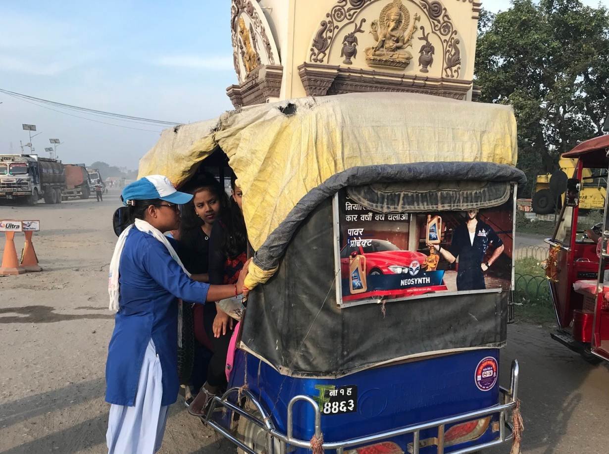 Human interceptor, Kopila Chhami, interrogates passengers traveling in a tuk-tuk near the Nepal-India border in Birgunj, Nepal, August 19, 2018.