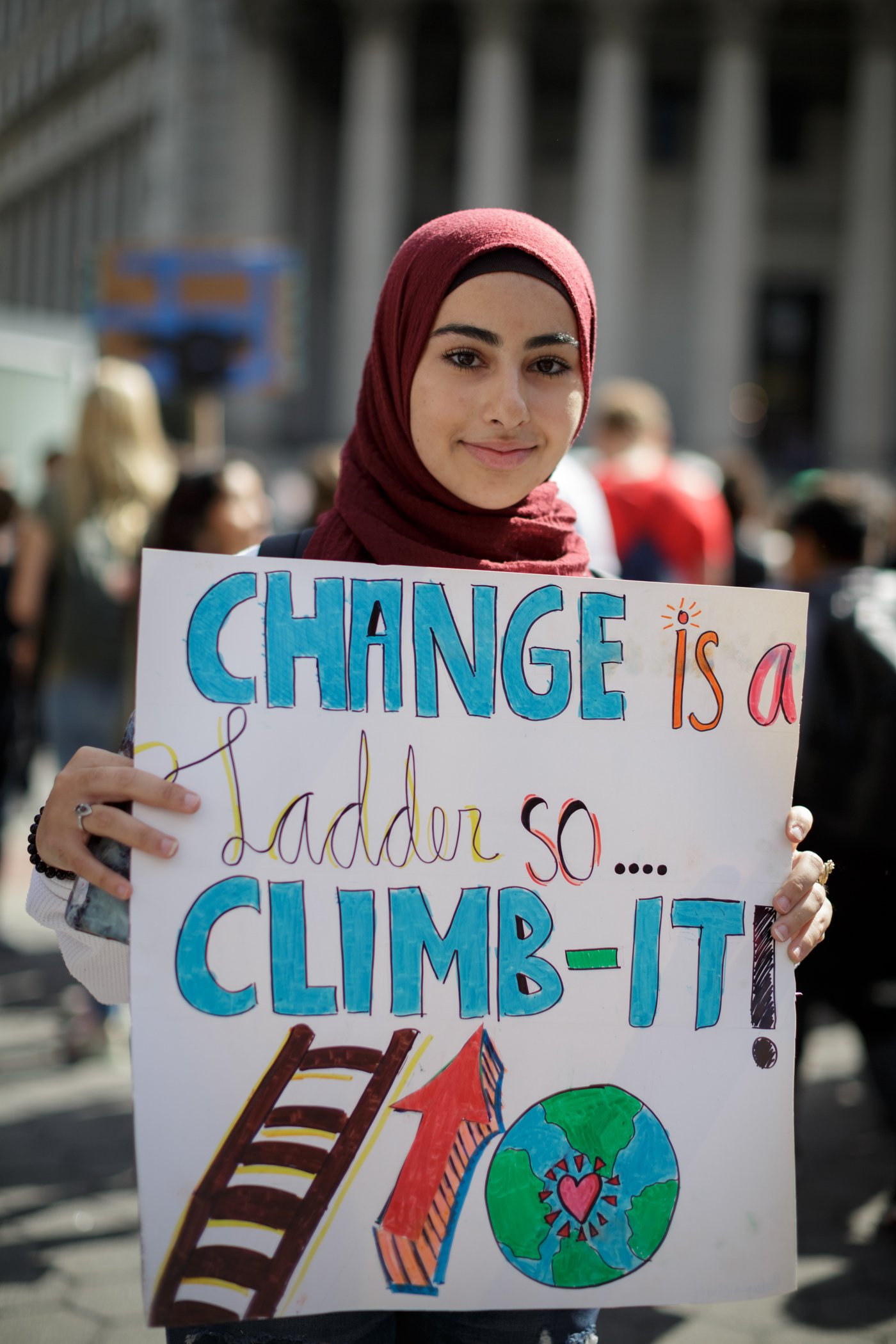 In New York, the crowd was dominated by high school students who led chants, hoisted creative signs, and called on local leaders to make climate change a legislative priority.
