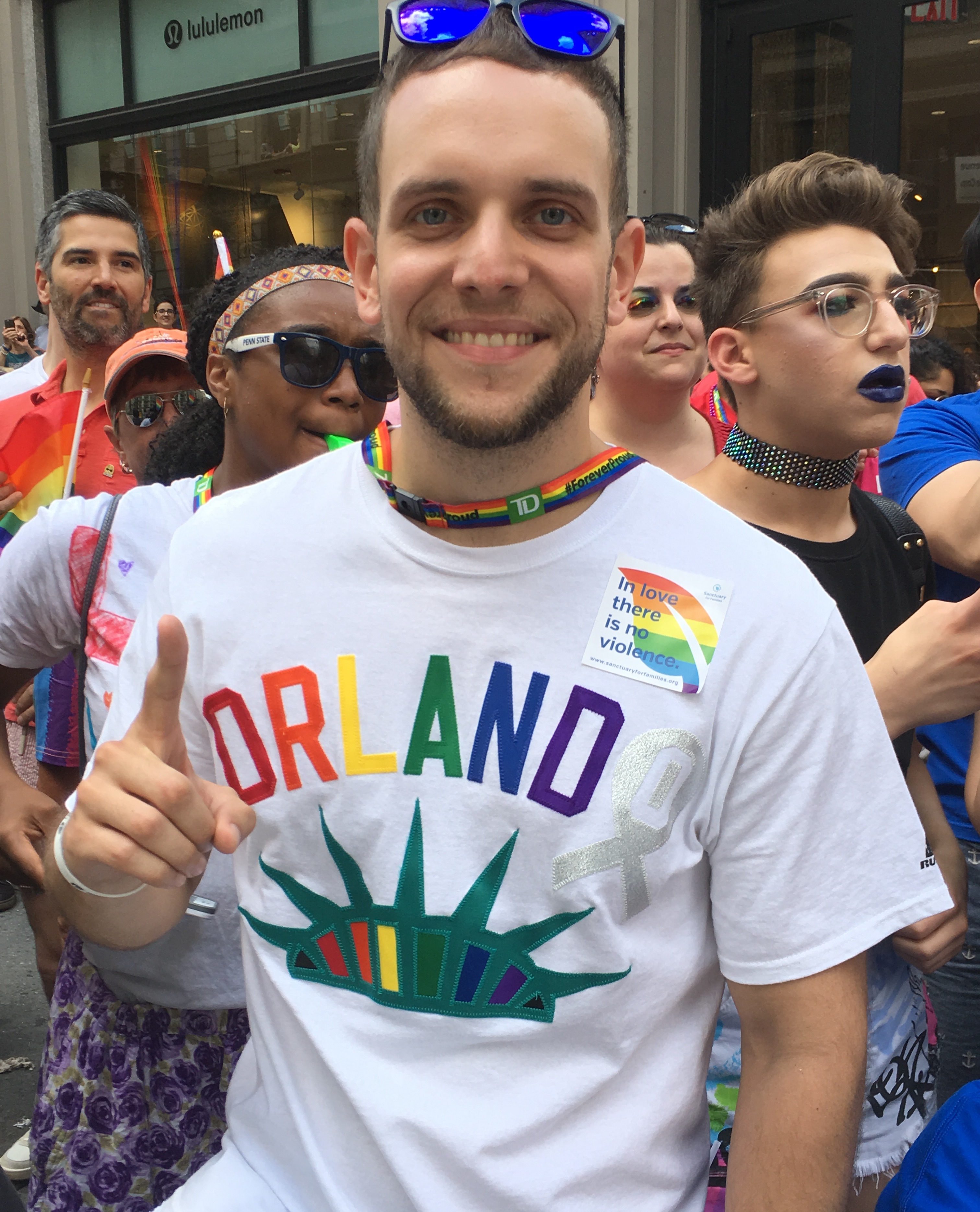 As the team float made its way down to 17th Street, Liberty fan Dillon Knight of Chelsea stood on the corner surrounded by friends and family wearing a T-shirt emblazoned with ORLANDO on top of the Statue of Liberty crown.