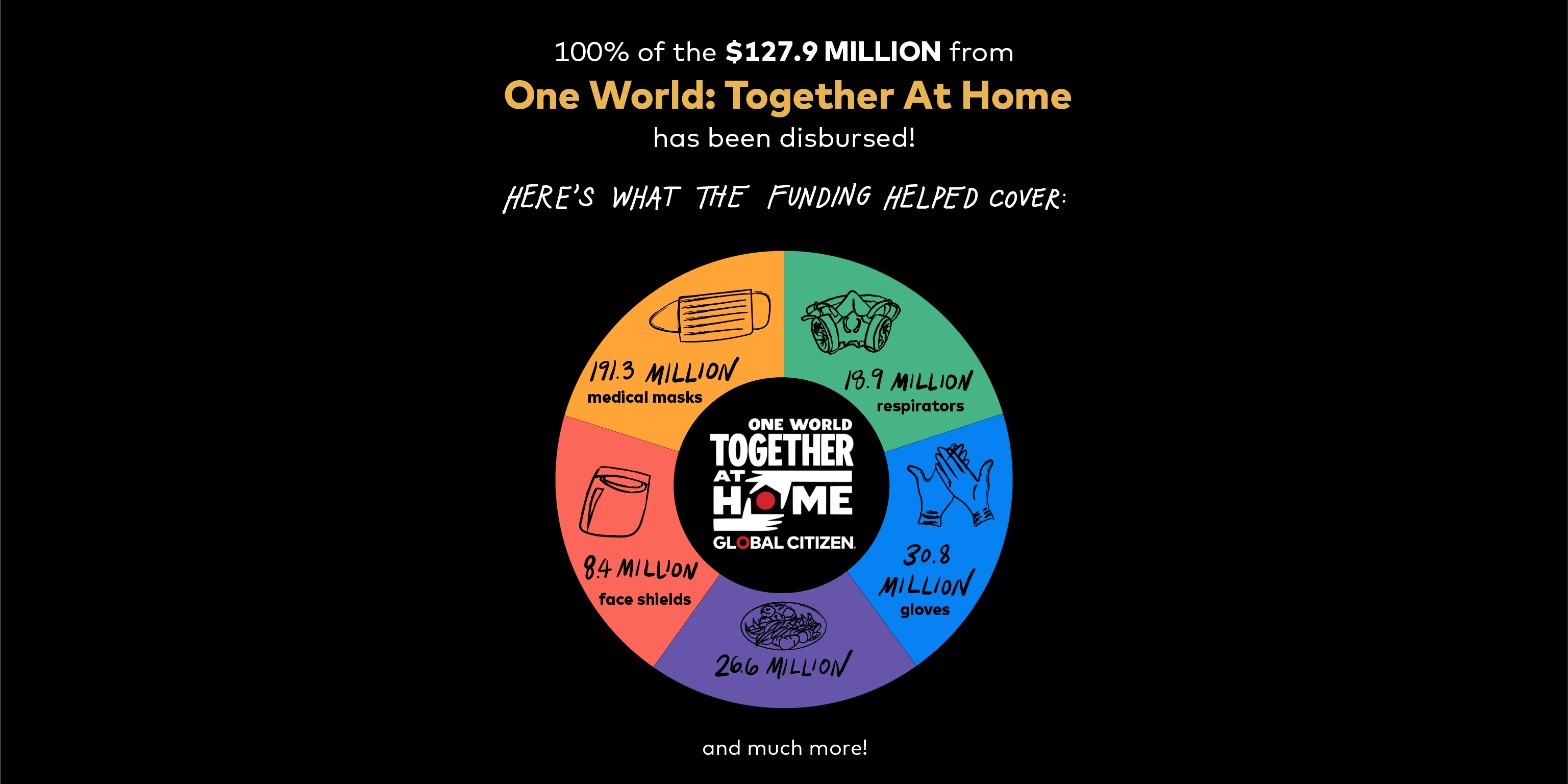 One year on from One World: Together At Home, 100% of the $127.9 million pledged in funding has been disbursed, impacting the lives of millions of people throughout 2020 and into 2021.