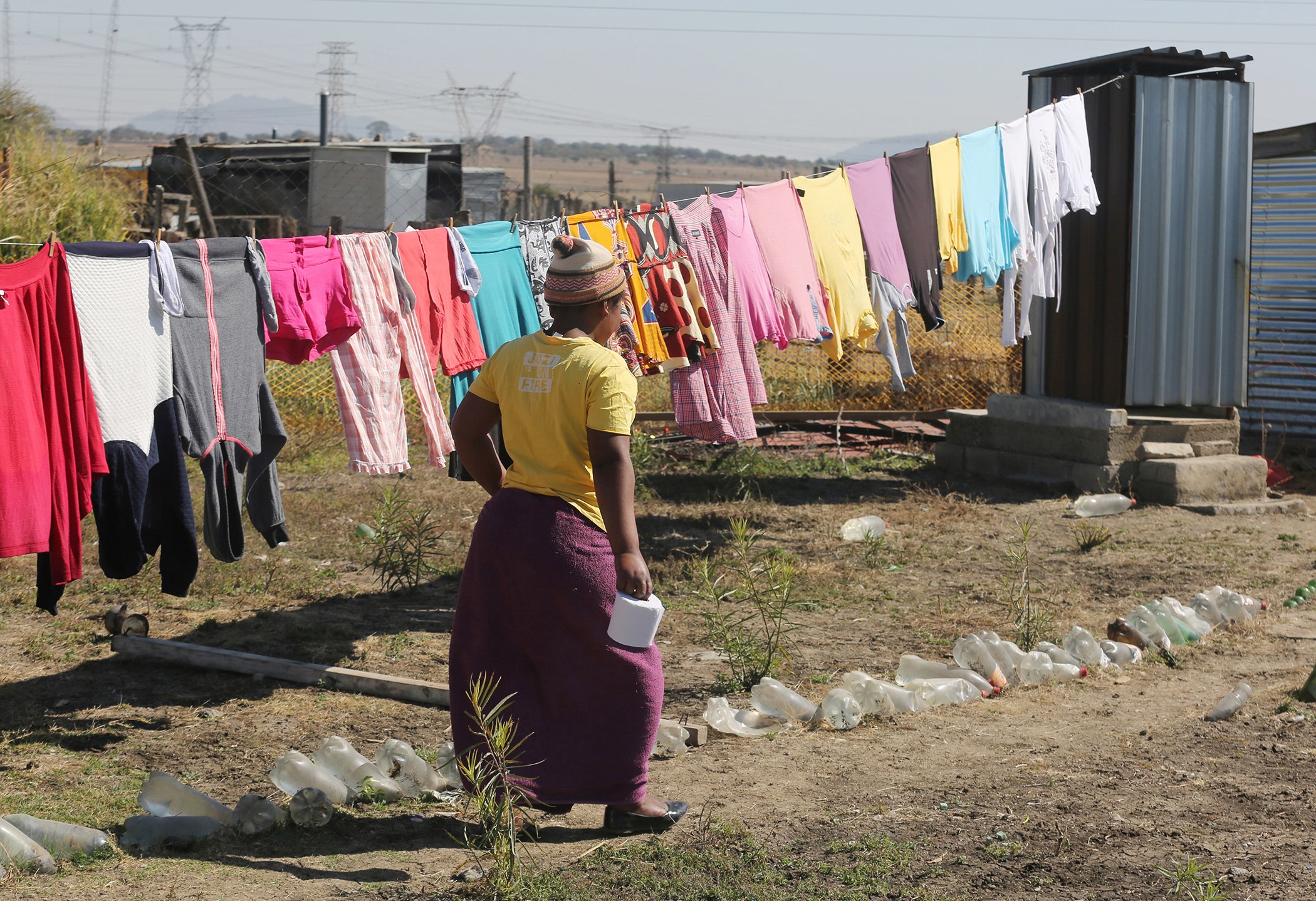A woman heads to an outside pit latrine toilet in Marikana, South Africa in August 2016.