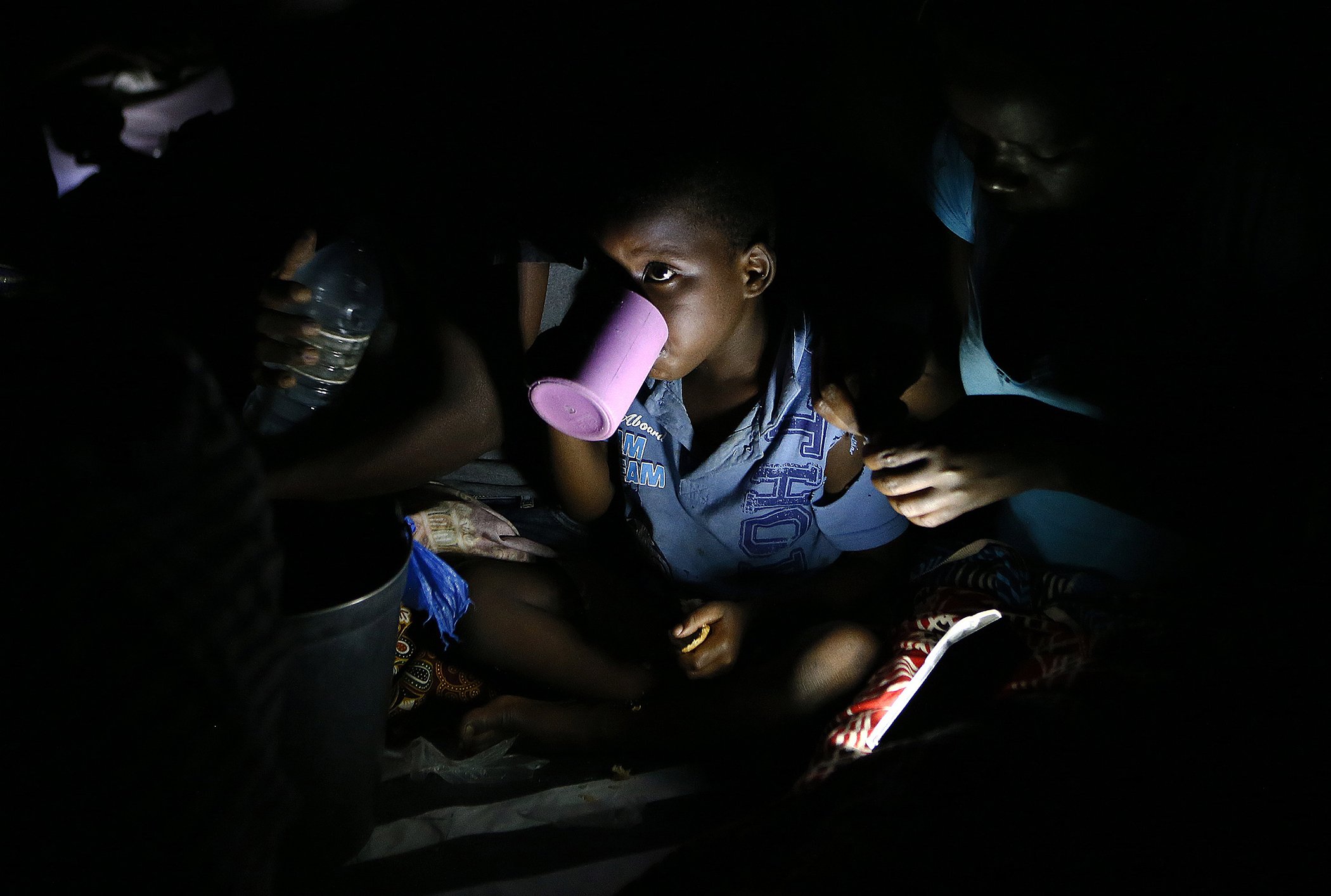 A displaced family arrives after being rescued by a boat from a flooded area of Buzi district, 200 kilometers (120 miles) outside Beira, Mozambique, on March 23, 2019.