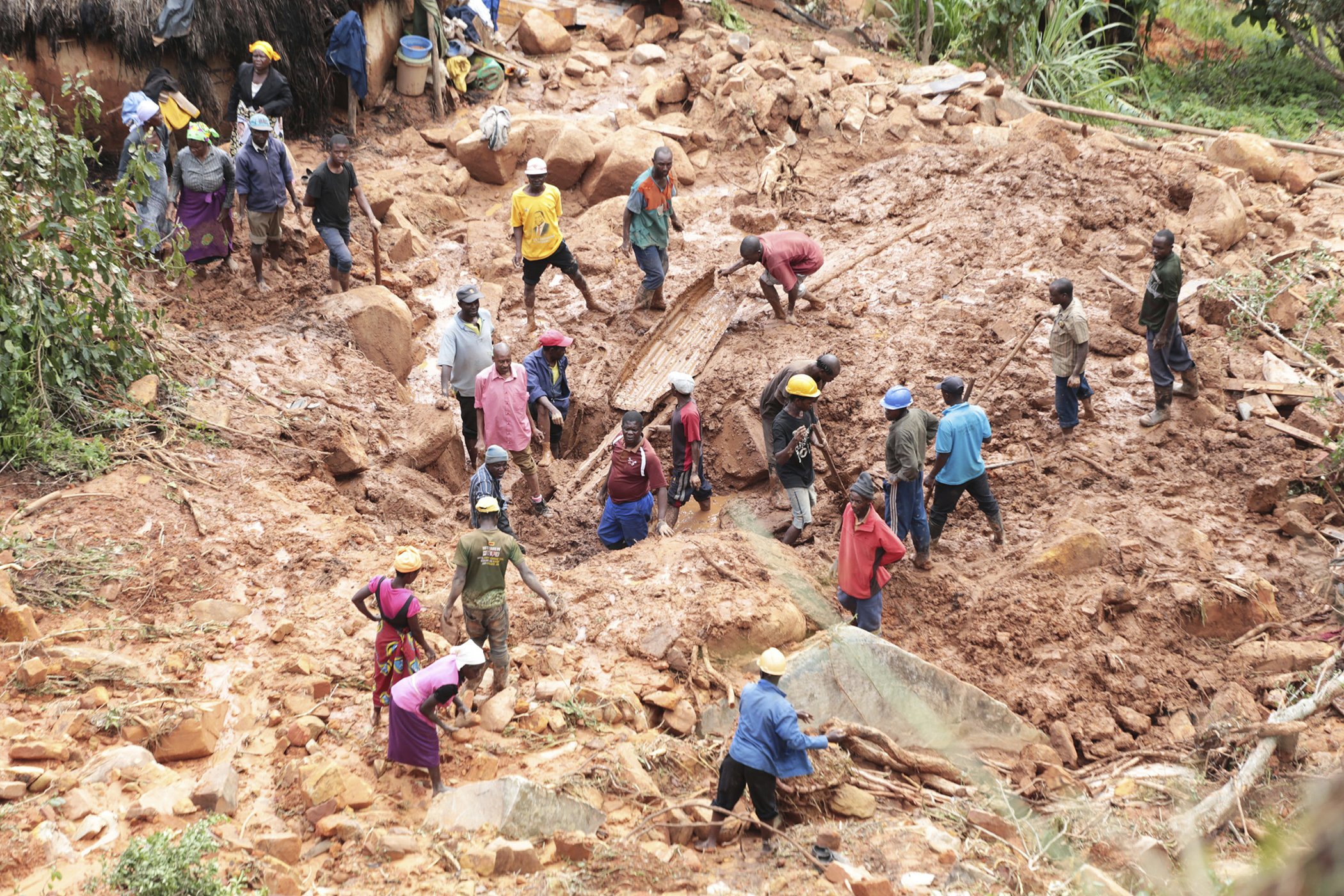 A family dig for their son who got buried in the mud when Cyclone Idai struck in Chimanimani about 600 kilometers south east of Harare, Zimbabwe, Tuesday, March, 19, 2019.