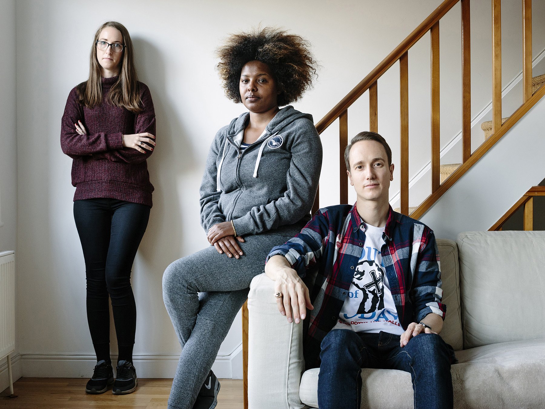 Australian social worker Emily Reynolds and her Dutch boyfriend Gijs Van Amelsvoort are hosting Areej, a refugee from Sudan, in West London. The three spend time together watching movies and sharing meals. Areej, 30, knows all too well how difficult it is to start a new life in a new country. She has a master's degree from Nottingham University in environmental management but spends most of her time volunteering as an interpreter for asylum seekers in shelters and as an English language tutor. "It's almost harder being a refugee because as an asylum seeker you get housing and three meals a day but as a refugee you are completely on your own after 28 days."