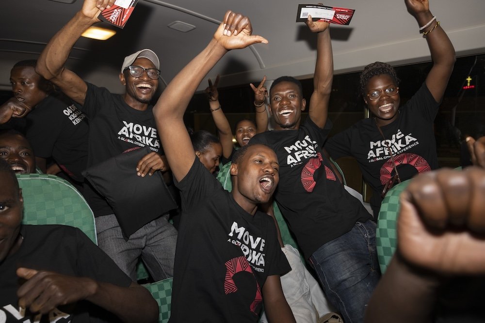 Ahead of the event, Global Citizen worked to bring dozens of young people from disadvantaged backgrounds to meet Kendrick Lamar, and attend his performance. Pictured here are some of them, hyped up on the bus on their way to Move Afrika after having met the man of the moment.