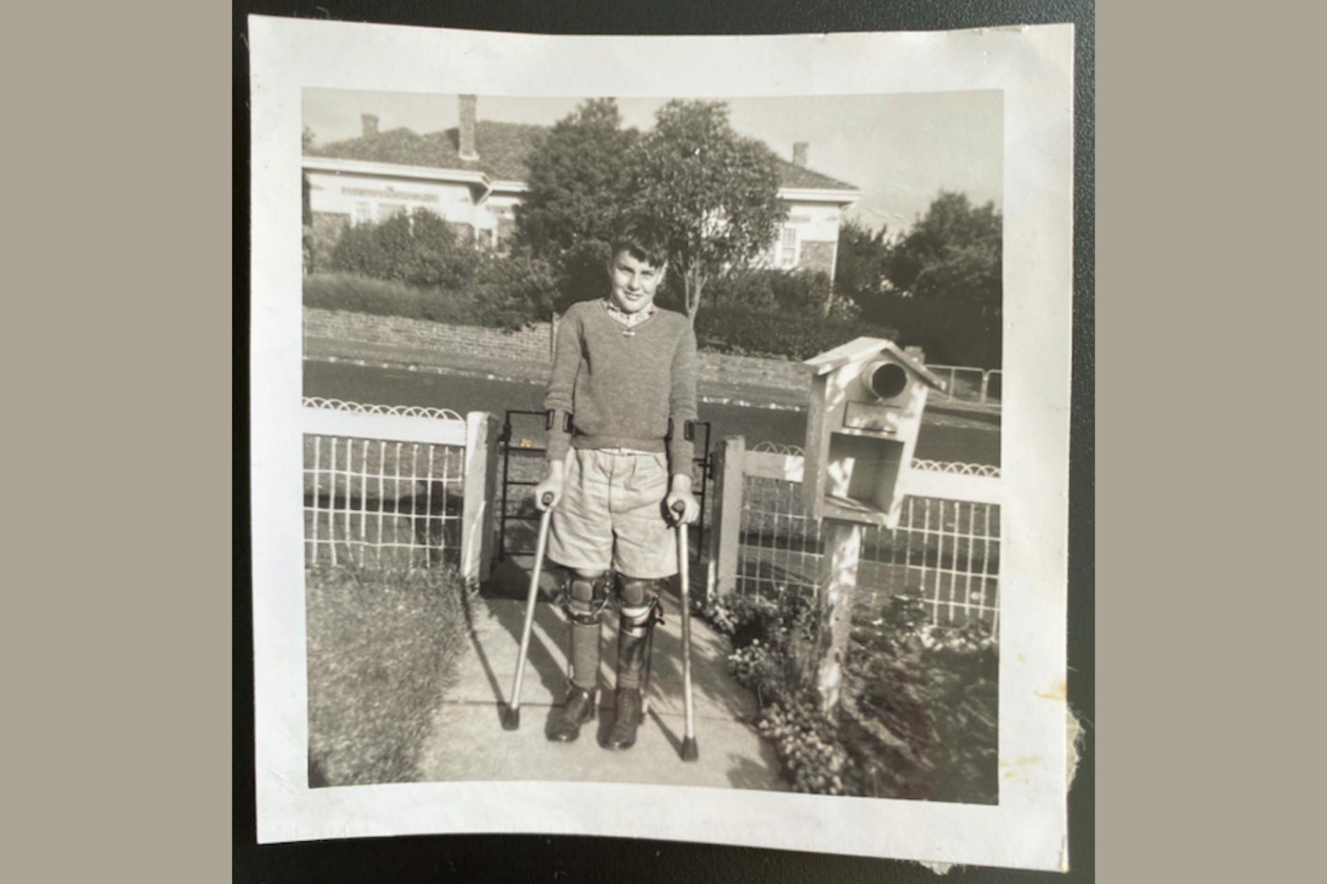 "Polio comes on like a very bad flu, so I was taken to Hamilton Hospital and diagnosed there [after they took] some spinal fluid,” Absalom told Global Citizen. “I slept in a Thomas Splint, which is kind of like being crucified lying down, and eventually walked with callipers and crutches. In my late teens, the crutches were replaced with a walking stick and ankle-foot orthoses on my left leg and full calliper on my right leg.”