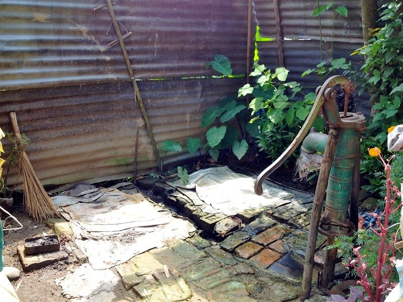 With no water filters installed in their homes, most of the laborers use a crude contraption that funnels water through a piece of cloth holding sand and crushed bricks, which are supposed to absorb some of the iron. But it doesn’t help much.