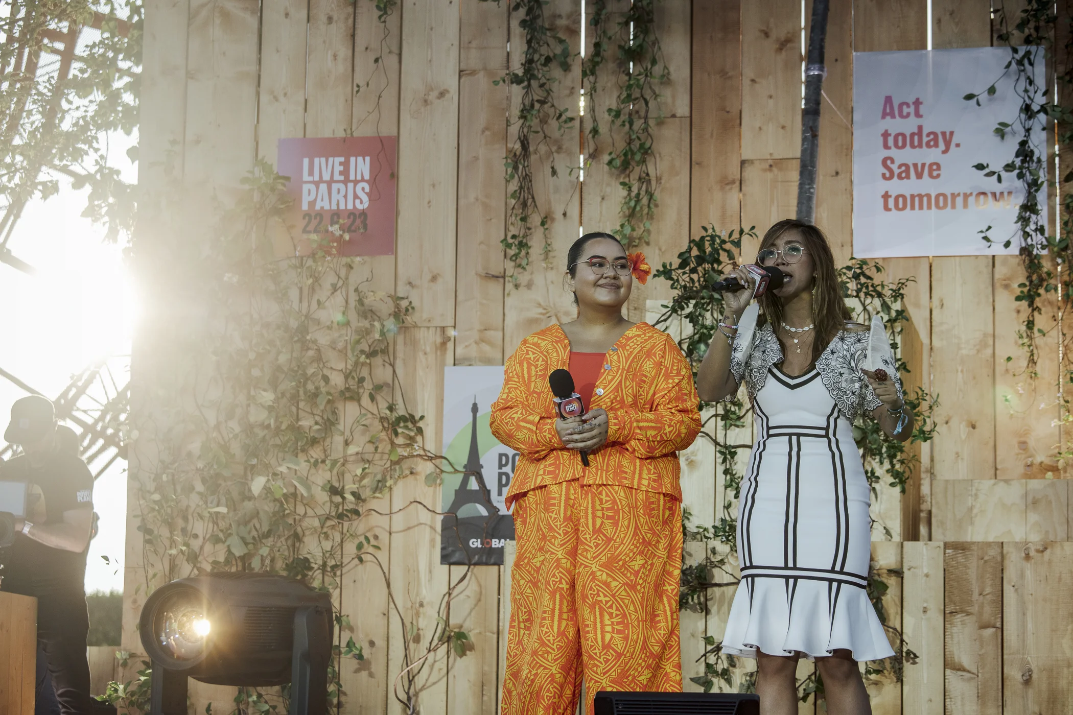 Climate activists Brianna Fruean and Mitzi Jonelle Tan on stage at Power Our Planet: Live in Paris, Thursday 22 June, 2023.
