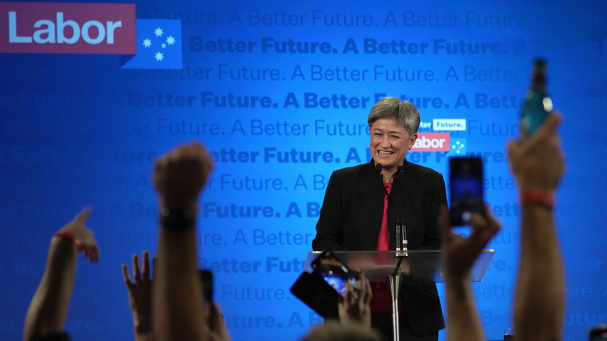 Australian Foreign Minister Penny Wong smiles as she introduces newly elected Prime Minister Anthony Albanese at an event in Sydney, Australia, on Sunday, May 22, 2022.