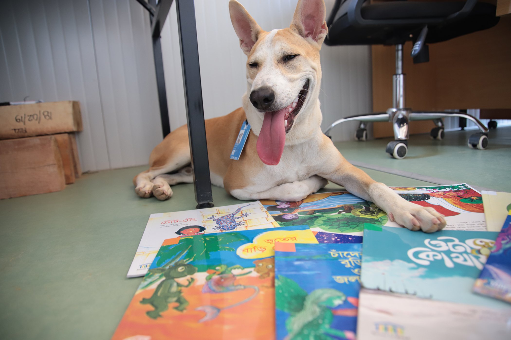 Foxtrot started out as a stray, but these days he’s learning multiple languages, studying the latest humanitarian news, and helping his bosses manage spreadsheets. He loves to visit the logistics centers, where he monitors food deliveries. And when monsoon season arrives, Foxtrot is making sure the settlement will be prepared to handle the rain.