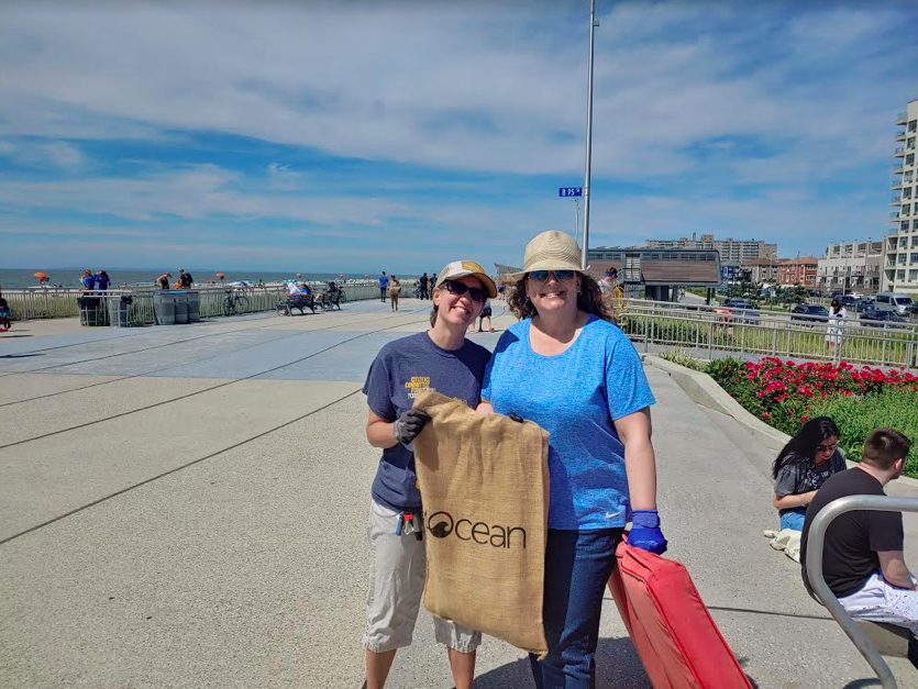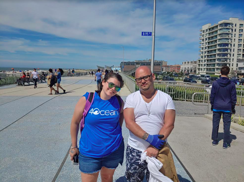 Jeannette and Ronnie from Queens were there to surf, but they grabbed a burlap sack to pick up some litter. They had both seen how plastic pollution makes its way into the ocean while out surfing.