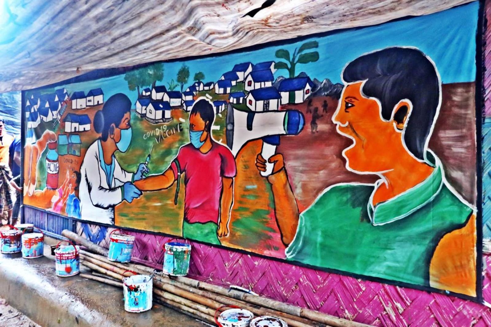 DHAKA, June 20 (Thomson Reuters Foundation) — Busy with his brushes beneath a tarpaulin roof, Rohingya artist Ansar Ullah works on a mural depicting a giant vial of COVID-19 vaccine towering over the ramshackle homes of the world's largest refugee settlement in Bangladesh.