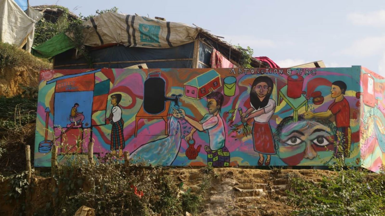 Ullah and his fellow artists are supported by New York-based nonprofit Artolution, and their project is the latest in a series of arts-based initiatives aimed at tackling issues in the camps — from gender-based violence to mental health concerns.
