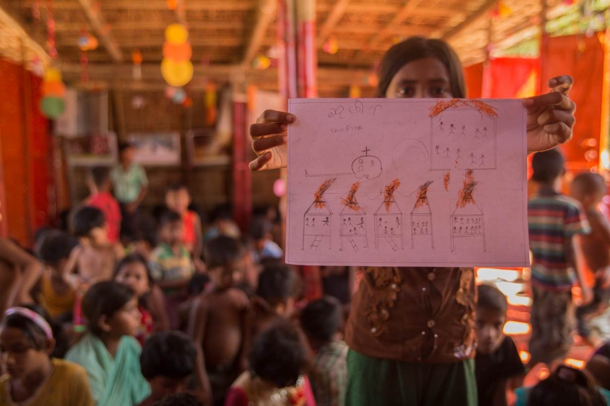Hundreds of child-friendly spaces have been set up across the sprawl of Bangladeshi camps, offering the children support as well as safe places to play.