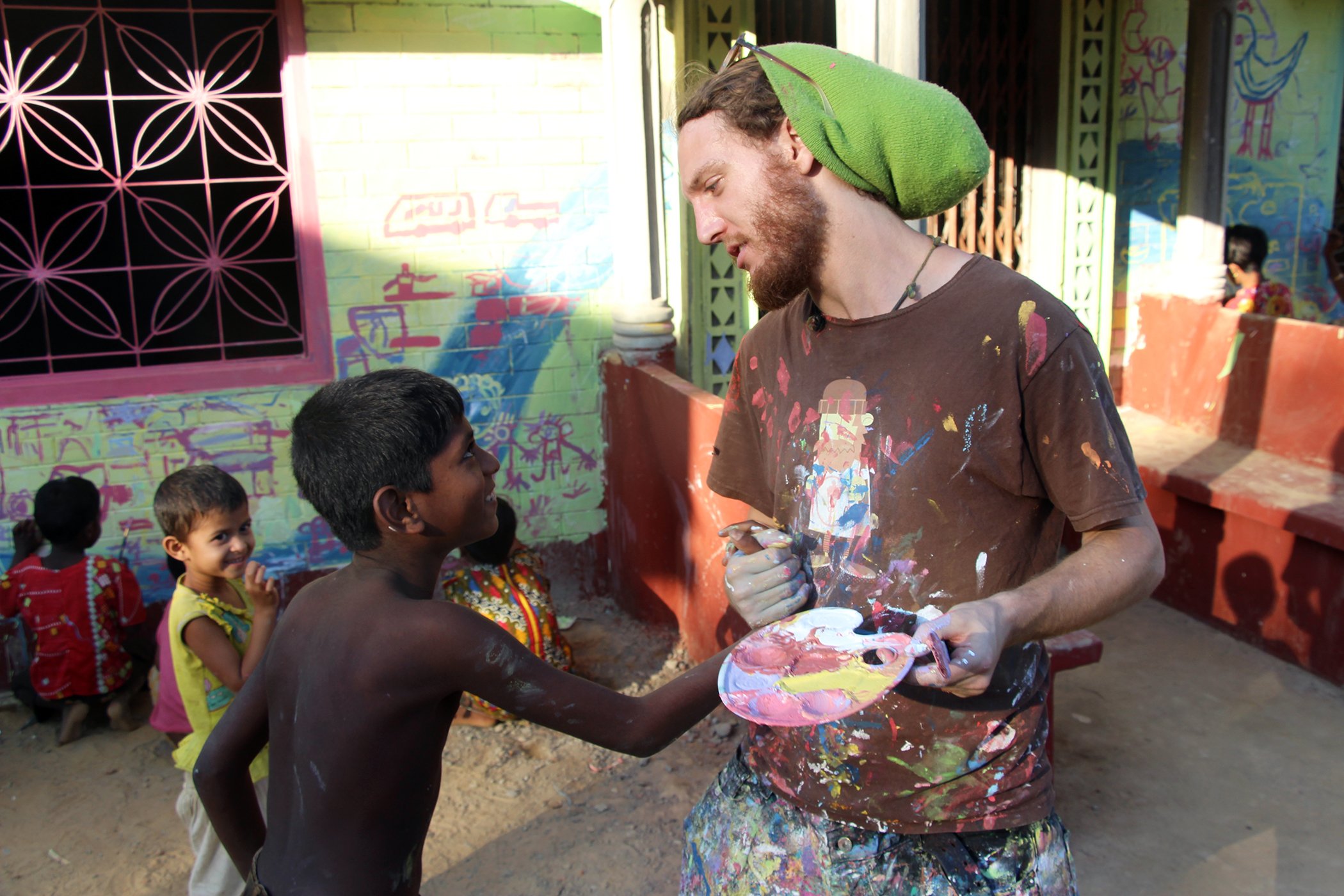 Frieder didn’t just teach the children how to hold the brushes, or paint on the walls. He also worked with them on breathing lessons to help them find emotional calm, and spoke to them about their stories and the trauma they had faced.