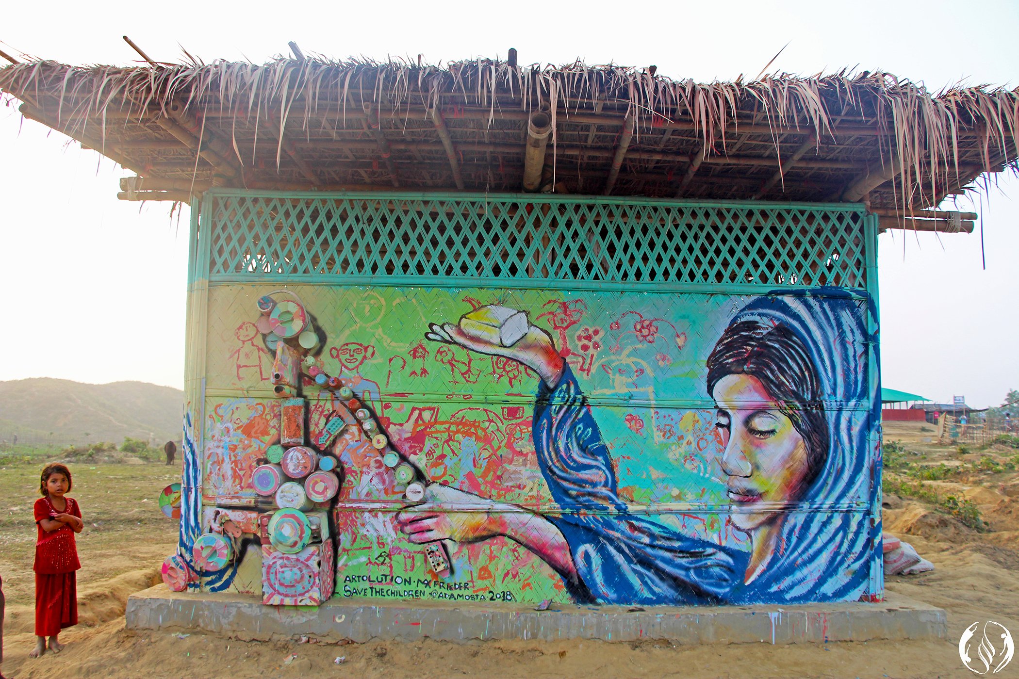 Frieder, for his part, is hopeful that the murals and found object sculptures will leave an indelible mark on both the built environment and the people that made them. And despite the bleak conditions in the camp, he sees a future for the Rohingya in girls like Royima.