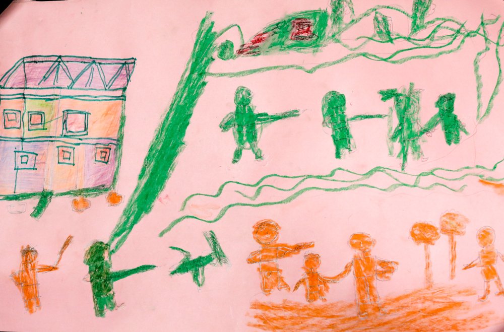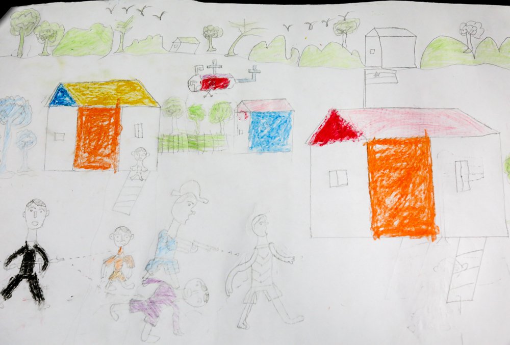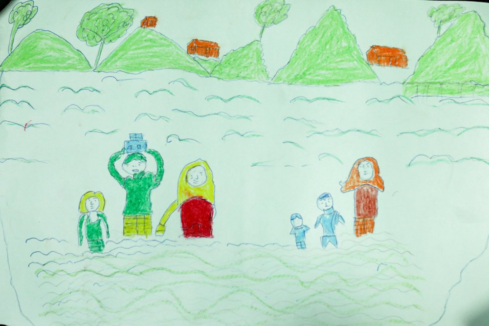 Armed soldiers laying waste to their villages; pools of blood done in red crayon as their families flee their homes; and parents clutching their few belongings as they lead their children on an arduous journey to Bangladesh’s refugee camps.