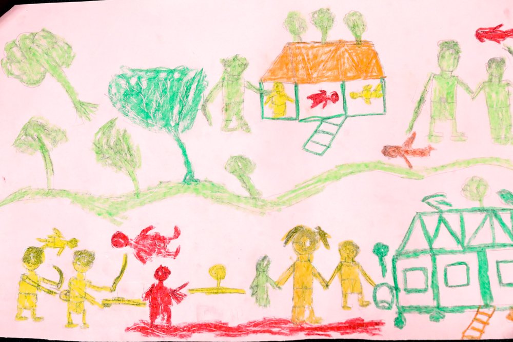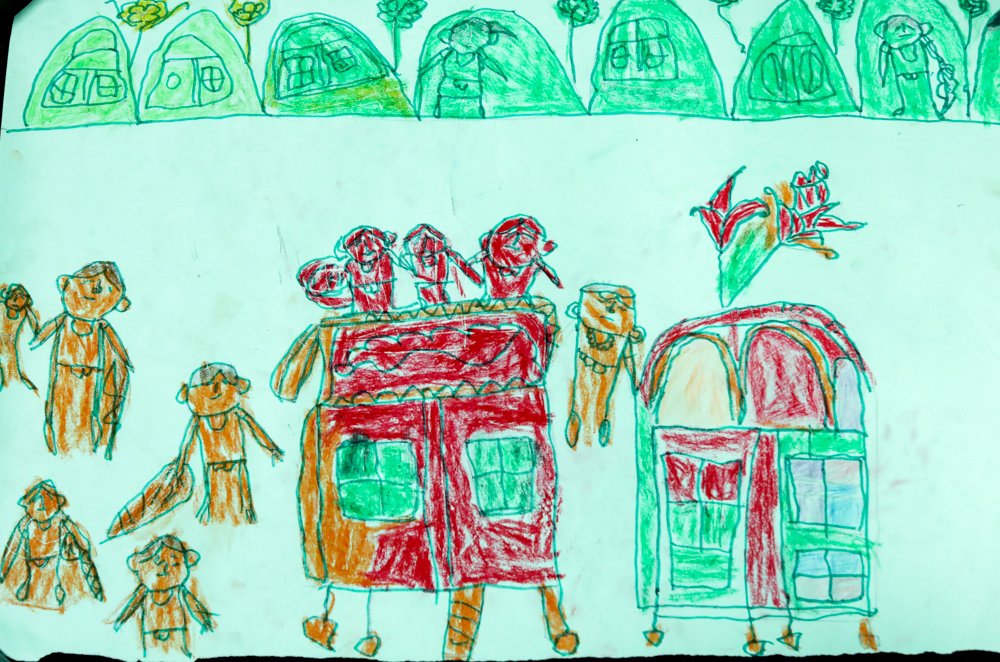 Save the Children UK, which is on the ground in Bangladesh running child-friendly spaces where children can be children, asked them to think of a message they wanted to to share with the world and communicate it through a drawing.