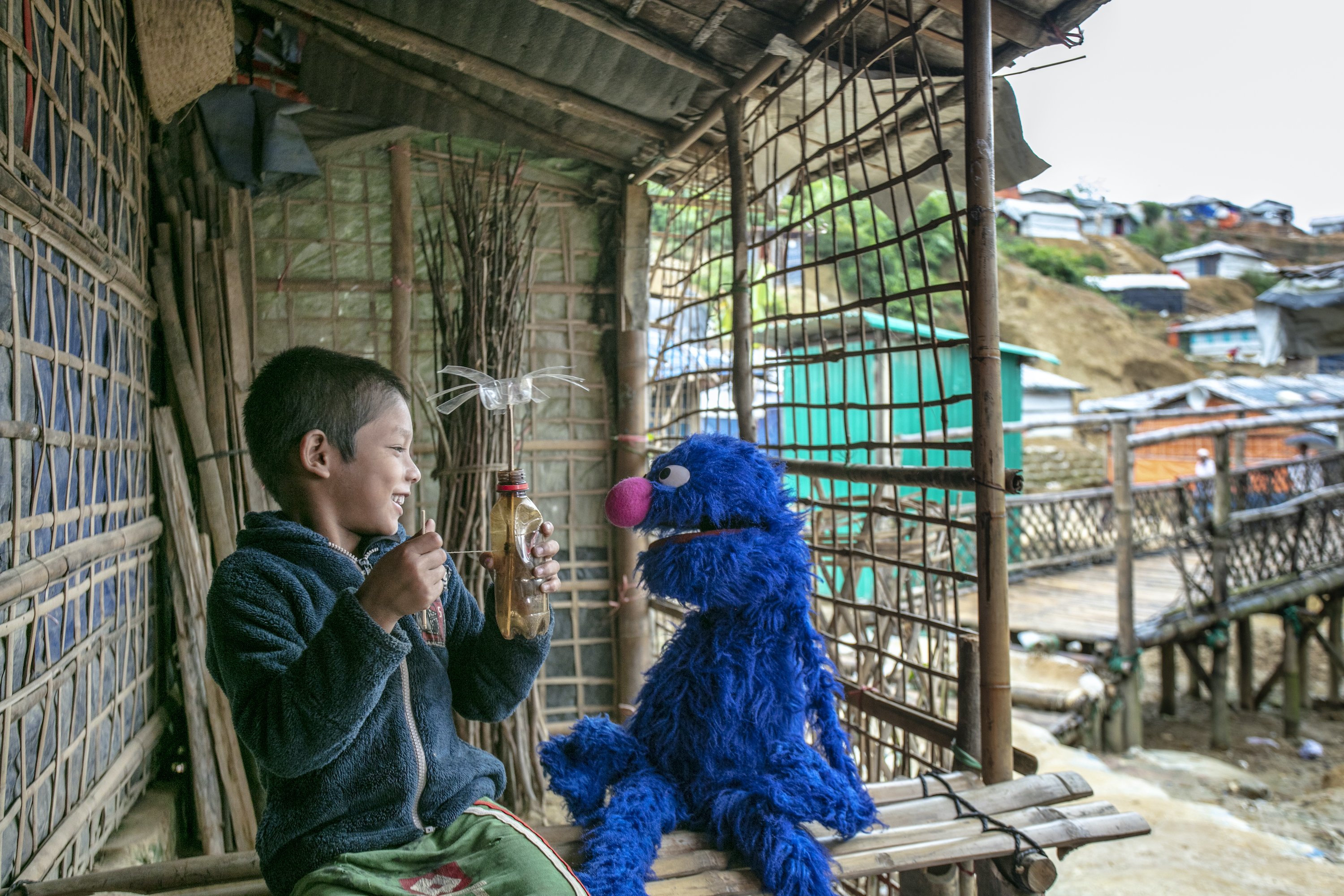 Noor and Aziz will be featured in Rohingya-language educational media as part of Sesame Workshop’s Play to Learn program, which supports children and families affected by the Rohingya refugee crisis.