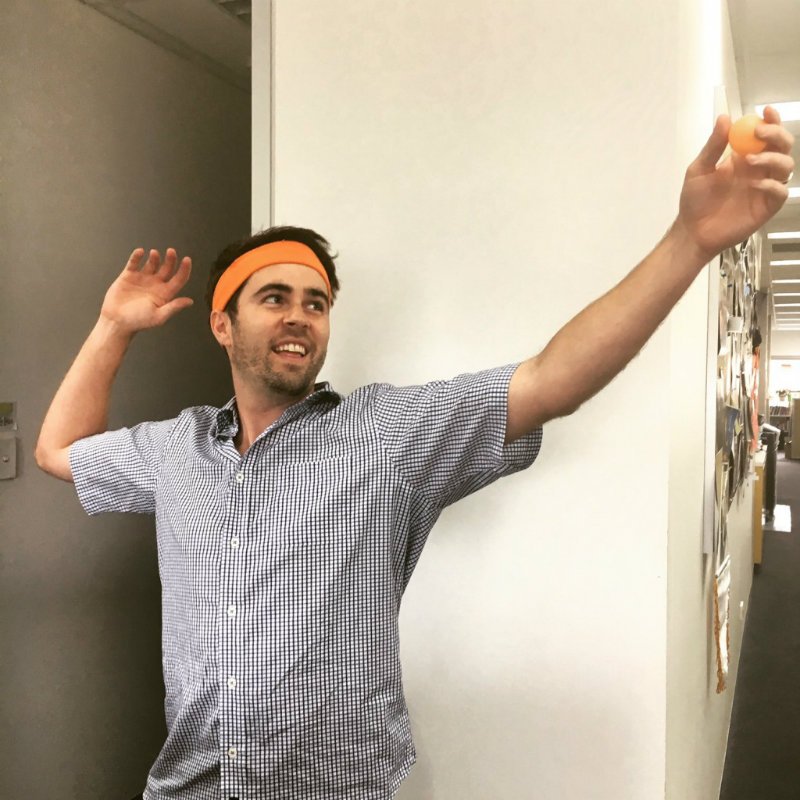 Here is Ryan, who actually plays tennis, giving us his best grand slam shot.