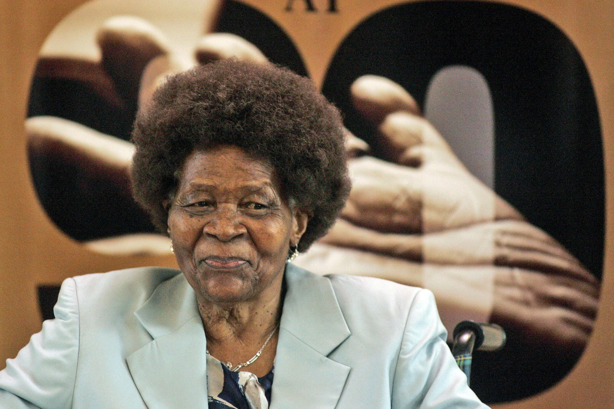 Albertina Sisulu looks on during an event at the Nelson Mandela Foundation in Johannesburg, South Africa, March 12, 2008.