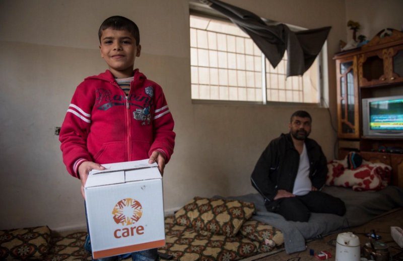 Shadi, with the help of an uncle, reads Joe’s words: “You and your family are not alone. There are many individuals and organizations like CARE that are concerned about you and want to help.”