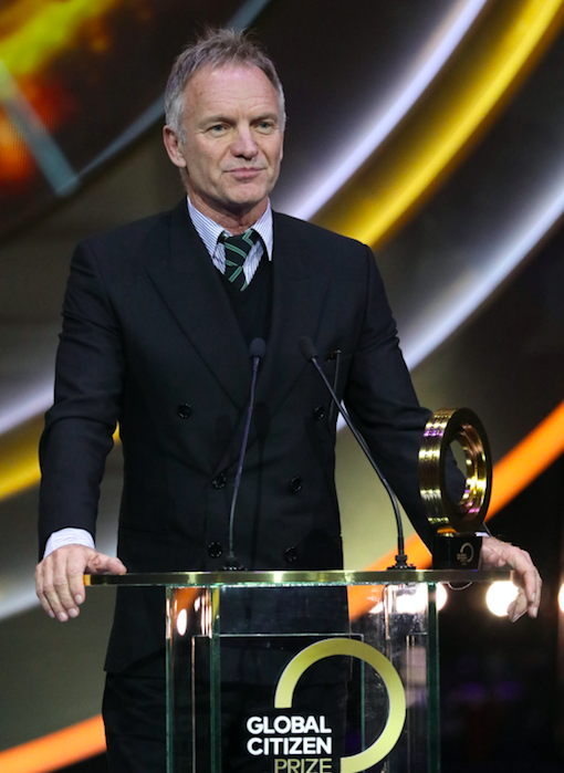 "As a citizen of course I’m honoured to receive this award, and it does provide the opportunity to admit that whatever successes, whatever battles we’ve managed to win in the struggle to save our planet, we may well be losing the war," Sting told the crowd of Global Citizens assembled at the Royal Albert Hall.