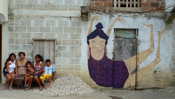 La Suerte, which means “luck” in Spanish, has been creating murals in Quito for more than 7 years. She is part of an art collective called Los Fenómenos. Through her art, La Suerte loves to play with the idea of the female body.