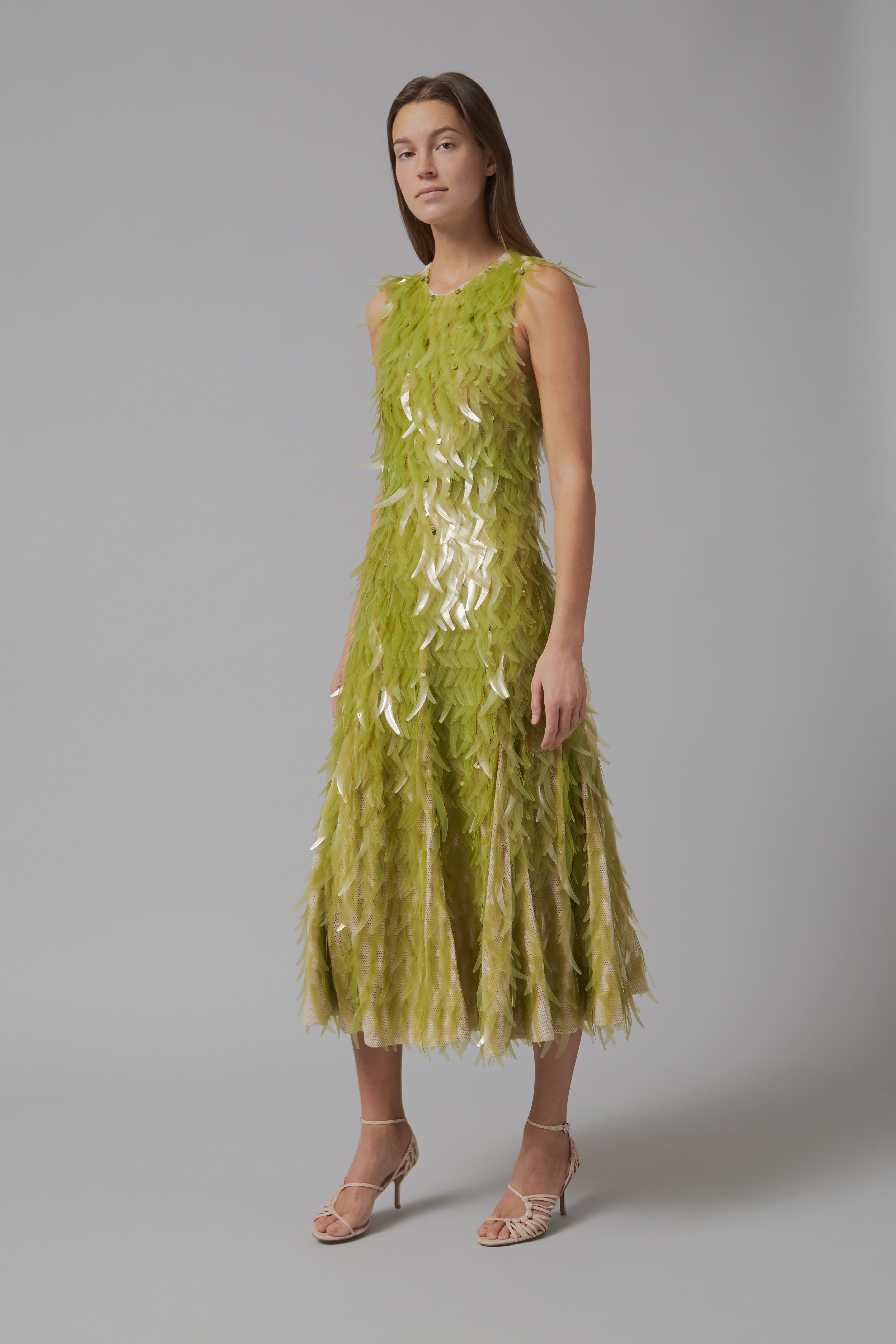 Believe it or not, the sequins on this dress are made from 100% bioplastic and could provide some insight into the future of high-end fashion materials.