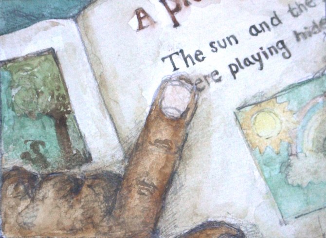 He is also the only student in class who can’t read. All the others can. Some read slowly, softly murmuring each letter, every syllable. Others read fast and with pleasure. But this boy, with his earth-covered knees, can barely decipher the alphabet. He was absent too much when the alphabet was taught and after that nobody has ever had the time to help him properly.