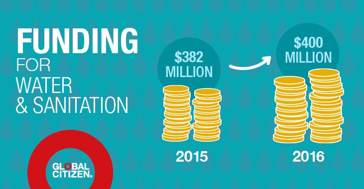 The United States increased funding for water and sanitation programs from $382.5m in FY15 to $400m in FY16. USAID reports that this commitment is set to affect a total of 400,000 lives.