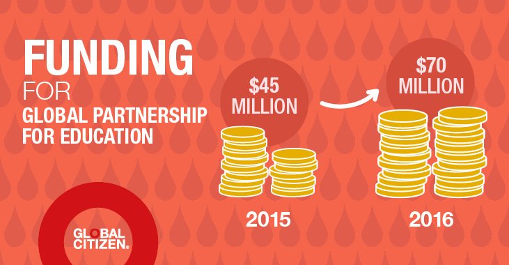 The United States increased funding for the Global Partnership for Education by over 50 percent- from $45m in FY15 to $70m in FY16.