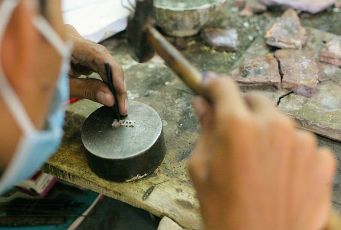 The Brave Collection jewelry is handmade by talented Cambodian artisans who come from underprivileged backgrounds or suffer from disabilities. Mostly mothers, their team of artists work in a small studio in Cambodia, or from their homes while they care for their young children. All artists work in a free, fair, and dignified work environment where they are paid above average wages and receive benefits such as health insurance and stipends for their children's education. The Global Citizen Store is featuring the brand’s classic handmade bracelet with the message “Brave” (Klaa-han in Khmer) carved from brass.