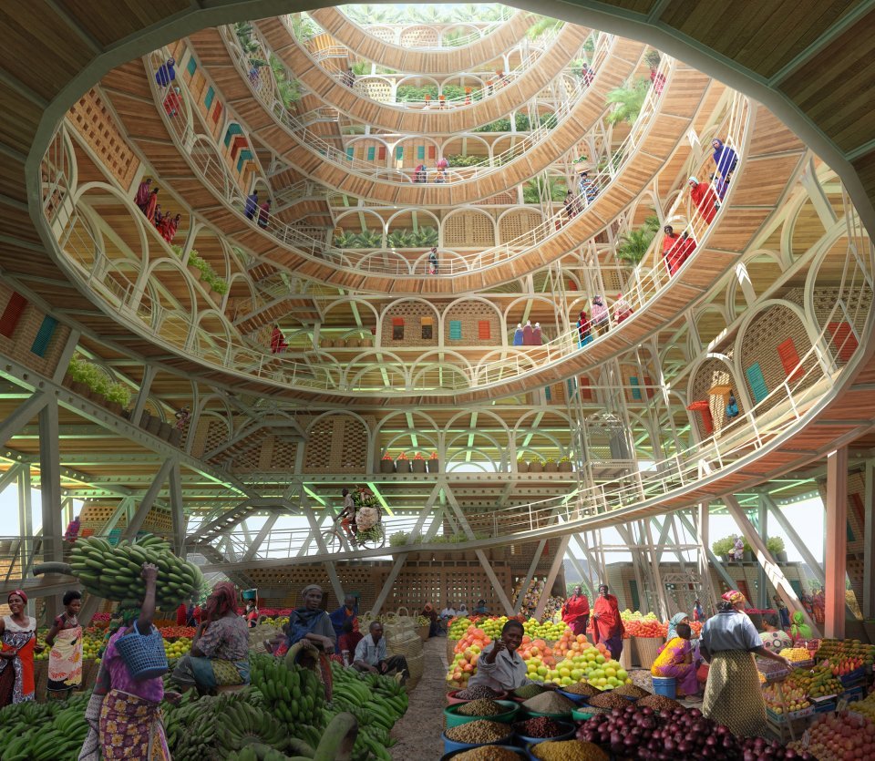 One of the most unique features of the Mashambas Skyscraper is that it’s movable. It can be built in one place, stay there for a matter of months or years (or, as the designers write, until the community becomes self-sufficient), and then be rebuilt in a new location. After the structure is moved, a base layer remains, which can serve as a marketplace for villagers.