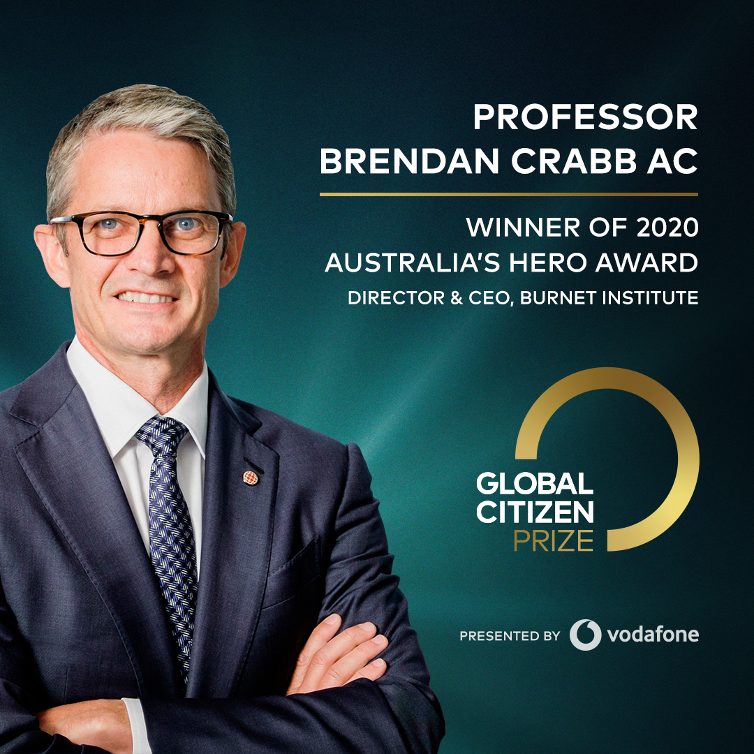 The Global Citizen Prize: Australia’s Hero Award, presented by Vodafone, has been won by Professor Brendan Crabb AC, the director and CEO of medical research facility the Burnet Institute. The Country Hero Award honours individuals who have shown exceptional commitment to achieving the United Nations’ Global Goals. Along with Australia, the award will be presented to individuals or organisations in Canada, the United Kingdom, Germany, Nigeria, South Africa, and Mexico.