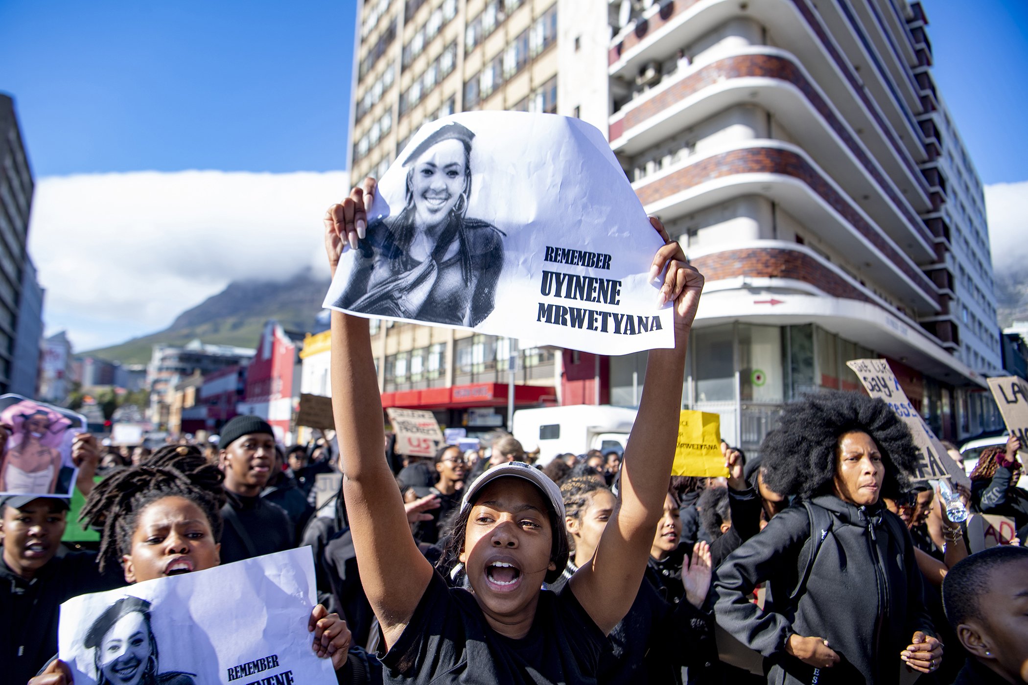 1. Gender Based Violence Protests in South Africa: Protesters, mainly women, gather outside parliament in Cape Town, South Africa, Sept. 4, 2019. People demonstrated to demand that the government crack down on gender-based violence, following a week of brutal murders of young South African women that has shaken the nation. Placard displays a photograph of University of Cape Town student Uyinene Mrwetyana, 19, who was allegedly raped and killed by a post office employee when she went to collect her mail at a post office in Cape Town, according to the Associated Press. Thousands of people have not only taken to the streets to protest, but also to social media to express their anger and their own experiences with gender based violence, using the hashtags #NotInMyName #AmINext and #SAShutDown. South Africa's president Cyril Ramaphosa addressed protesters outside parliament in Cape Town on Thursday and in a video statement that evening, he promised to crack down on the epidemic of gender-based violence with a number of reforms, calling the crisis "a crime against our common humanity.”