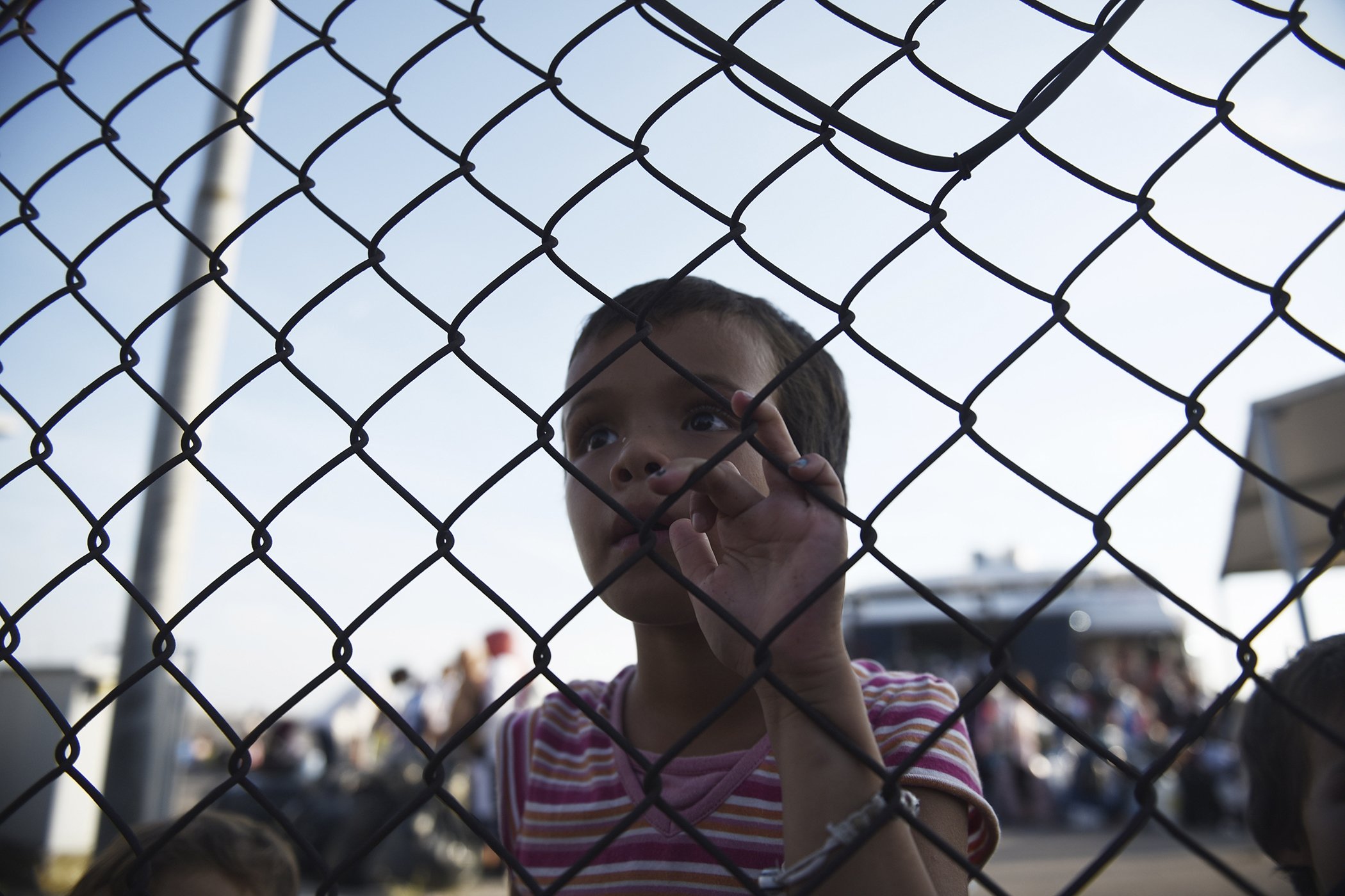 A migrant girl stands at the fence of the port of Thessaloniki, northern Greece, Sept. 2, 2019. About 1,500 asylum-seekers were being transported from Greece's eastern Aegean island of Lesbos to the mainland Monday as part of government efforts to tackle massive overcrowding in refugee camps and a recent spike in the number of people arriving from the nearby Turkish coast.