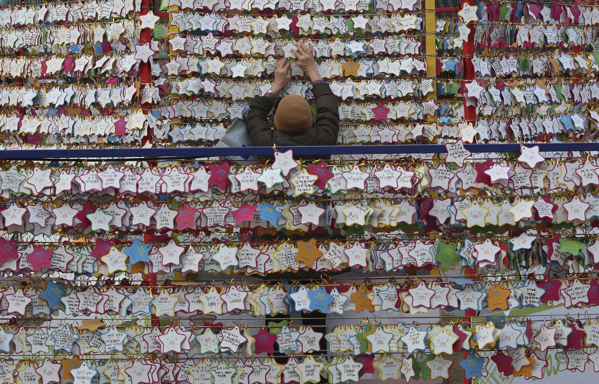 1. New Year: A woman hangs paper notes bearing her New Year wishes outside the Jogyesa Buddhist temple in Seoul, South Korea, on Dec. 31, 2018.