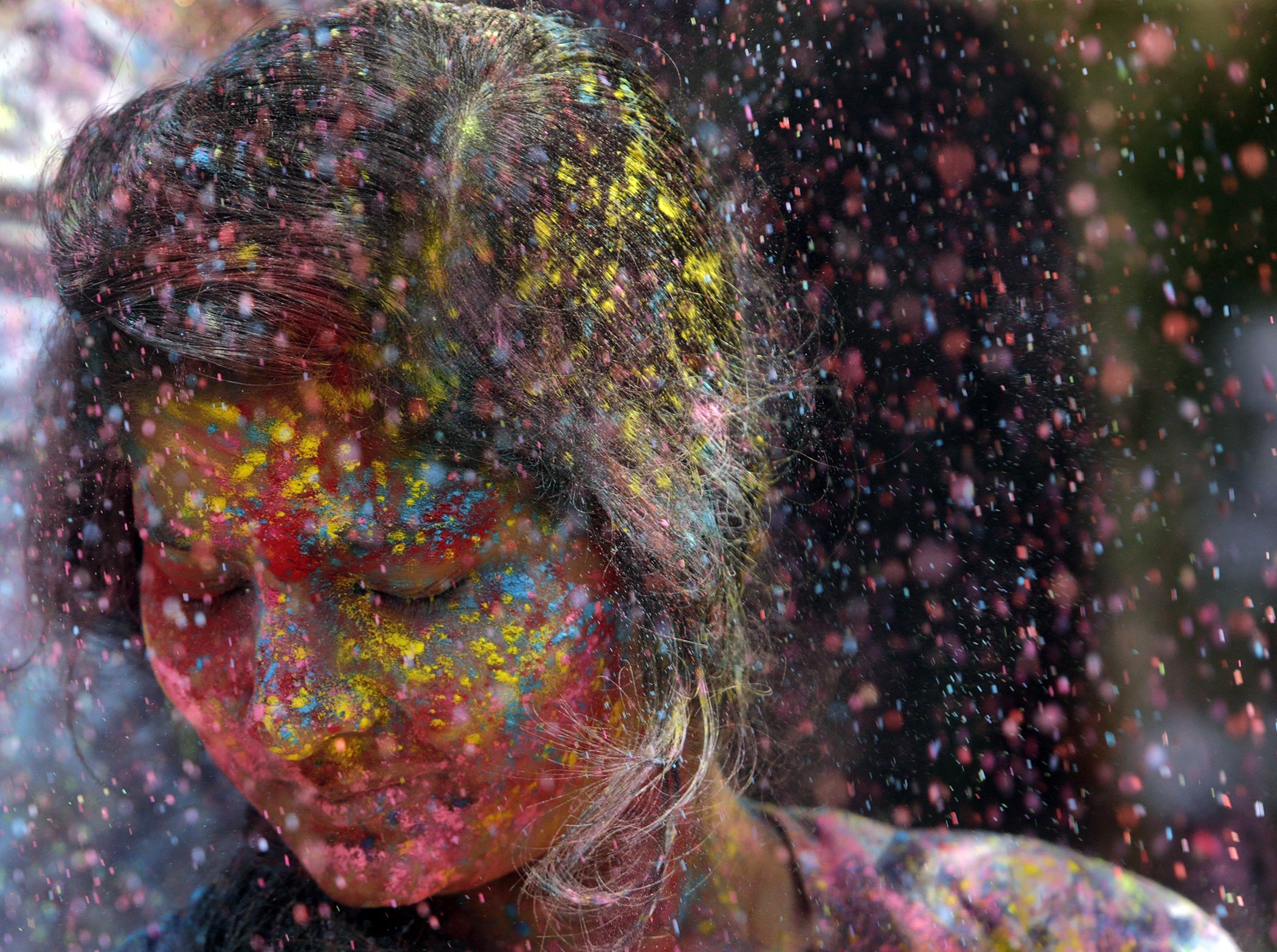 2) Holi: Revelers throw colored powder on a woman during celebrations marking Holi, the Hindu festival of colors, in Mumbai, India on March 21, 2019. Historically, the festival was held throughout the Braj region of India and Nepal (home of Krishna the Hindu deity of love) to welcome the end of winter and the beginning of Spring. Festivities begin with a bonfire on the eve of Holi and then the celebrations transition to an explosion of color the next day. Holi is also a time to forget and forgive misdeeds by friends and loved ones, as well as repair any troubled relationships.