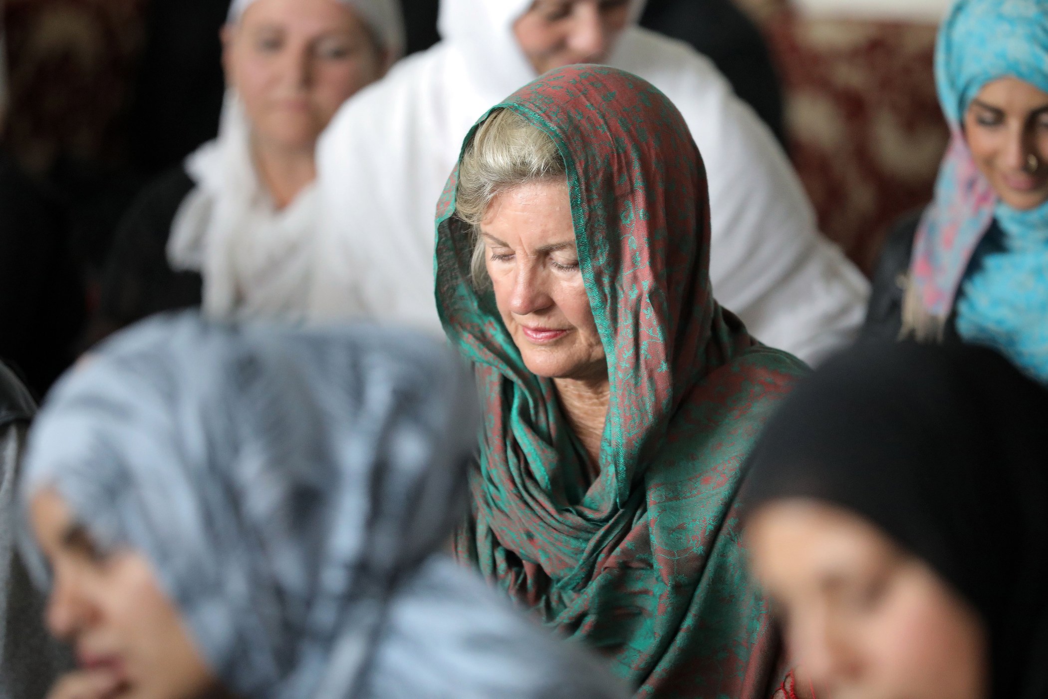 Local residents with head scarfs listen to sermons by the Imam during a call to prayer and moments of silence at Masjid Umar mosque in Auckland on March 22, 2019, a week after the Christchurch twin mosques attacks that claimed 50 lives. Thousands of New Zealanders gathered in Christchurch on March 22 to honor the 50 Muslim worshippers killed one week ago by a white supremacist, with a call to prayer broadcast around the country and a two-minute silence.