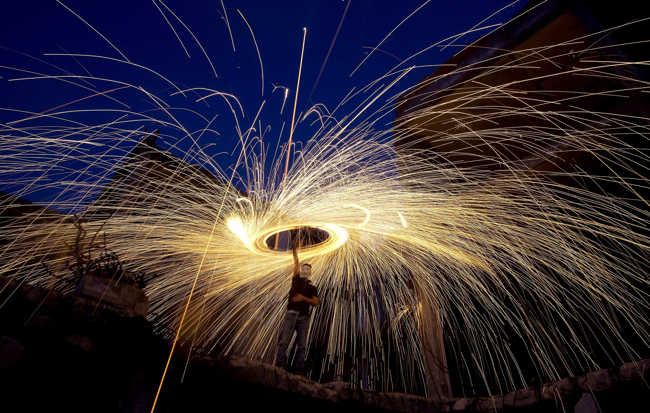 4. Ramadan: Palestinians light fireworks above the rubble to celebrate the holy month of Ramadan in Gaza City, May 13, 2019. Muslims around the world are observing Ramadan, the holiest month in Islamic calendar, refraining from eating, drinking, smoking, and sex from sunrise to sunset.
