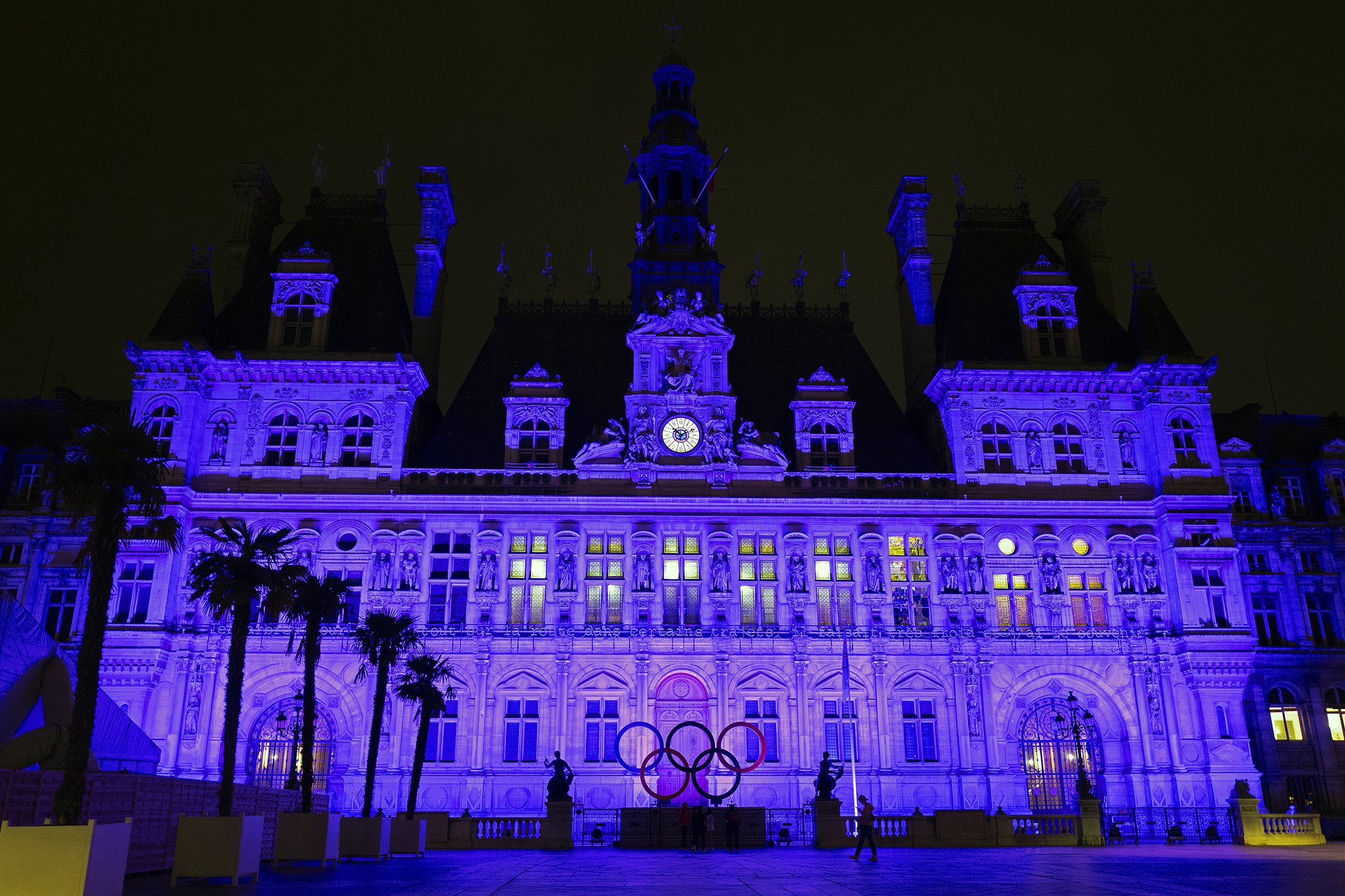 Paris City Hall is lit up to celebrate the launch of the International Paralympic Committee’s WeThe15 campaign on Aug. 19, 2021 in Paris, France.