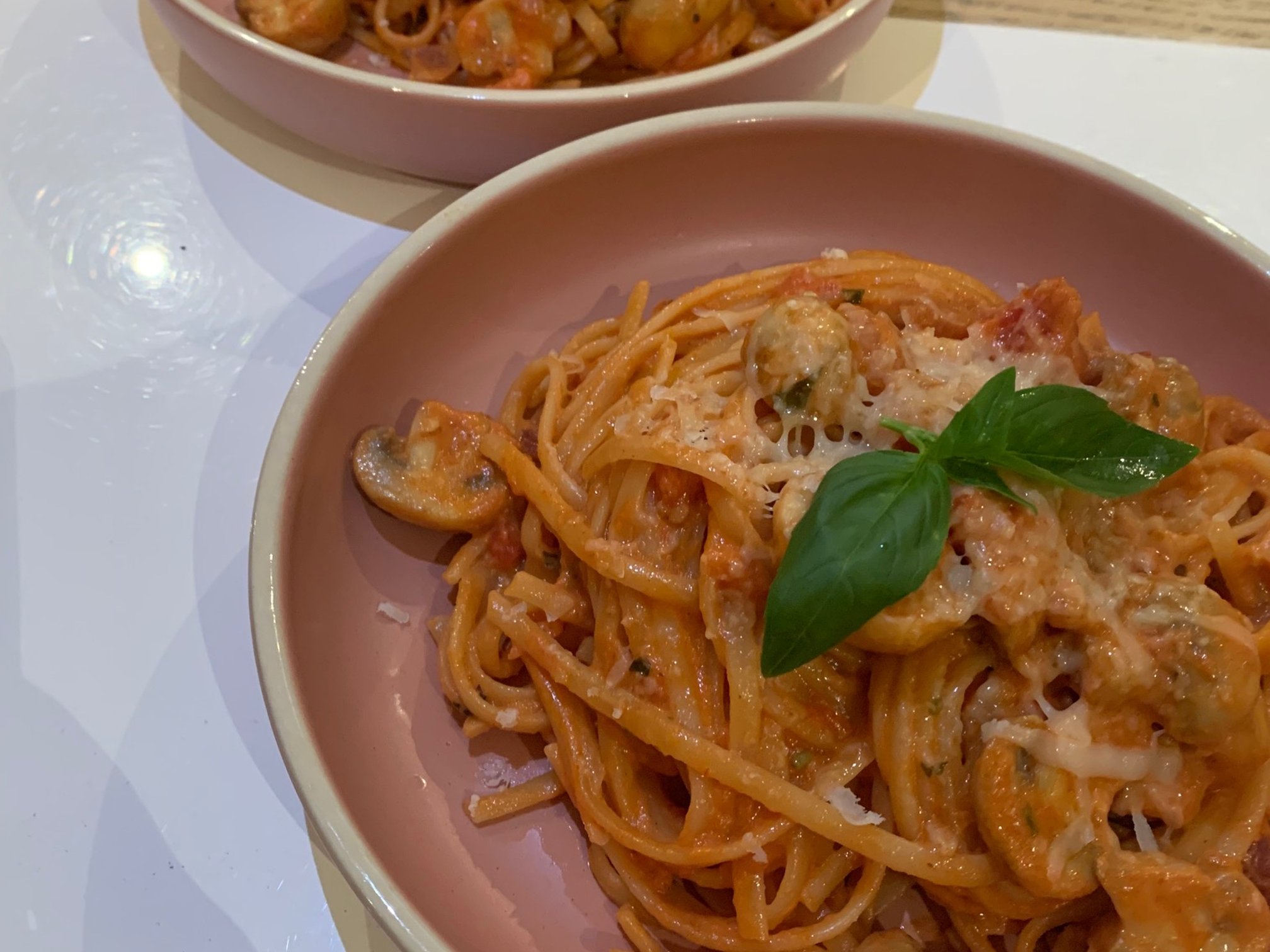 The punnet of mushrooms I bought turned out to be more than enough for me alone, so I called a friend to ask her if I could cook her dinner, and this ticked so many boxes. I made a pasta dish and instead of using half an onion, I used the whole onion, and I used all of the mushrooms, which otherwise would have sat in the fridge without future plans. The only waste I made in that meal were the onion peels, which I added to my compost bin.