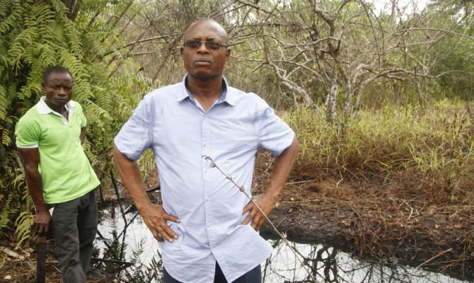 Finding the site of the most recent oil spill near the community of Rumuekpe, in the oil-rich yet troubled Niger Delta region of Nigeria, is relatively easy. First, take a truck down a narrow but paved road, until it ends. Then find a farmer with a motorbike, jump on the back, and rattle down a narrow path past farmers stacking oil palm kernels and yams in sacks, pulling them out of the way as you approach. When you find a huge fallen tree blocking the path, get off and walk another 200 meters.
