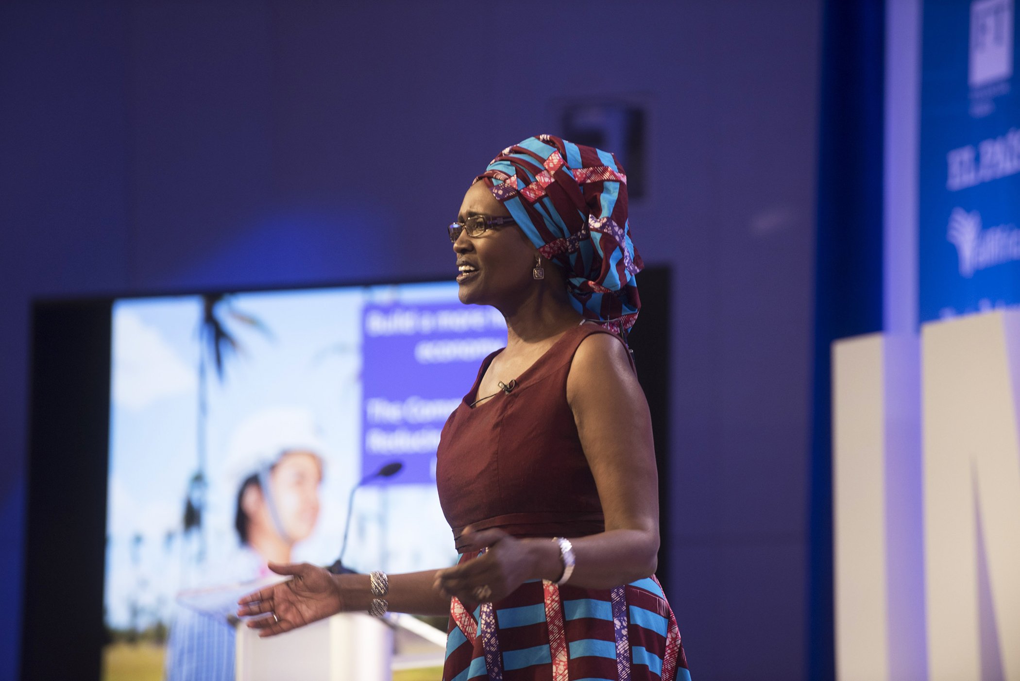 Winnie Byanyima speaks at an International Monetary Fund event in 2017.